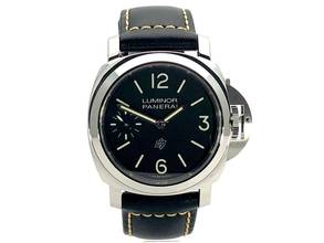 Gehäuse aus Edelstahl poliert, Gehäusedurchmesser 44 mm, Lünette aus Edelstahl poliert, schwarzes Lederarmband mit Dornschließe aus poliertem Edelstahl, schwarzes Zifferblatt mit arabischen Leuchtziffern und Stundenmarkierungen, Mechanisches Uhrwerk mit Handaufzug, Kaliber Panerai P.6000 mit 19 Steine, Schwingung 21.600 A/h., Gangreserve 72 Stunden, kleine Sekunde, entspiegeltes Saphirglas, Edelstahlboden, Wasserdicht bis zu 10 bar.