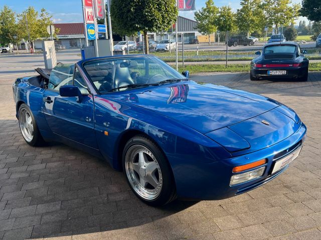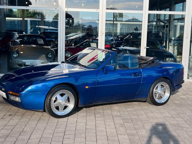 Entdecken Sie diesen klassischen Porsche 944 S2 Cabriolet aus dem Jahr 1991 mit einer beeindruckenden Leistung von 211 PS. Der Sportwagen präsentiert sich in einem gepflegten Zustand mit blauer Metallic-Lackierung und passender blauer Teillederausstattung. Mit seinem Heckantrieb und manuellem Getriebe bietet er ein authentisches Fahrerlebnis. Der Wagen verfügt über eine vollständige Servicehistorie und wurde kürzlich einem neuen Service unterzogen. Die grüne Umweltplakette unterstreicht die gute Emissionsbilanz für einen Klassiker dieses Alters.