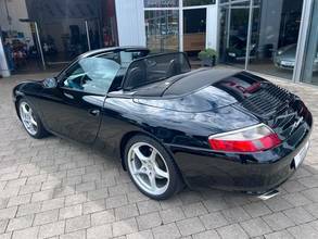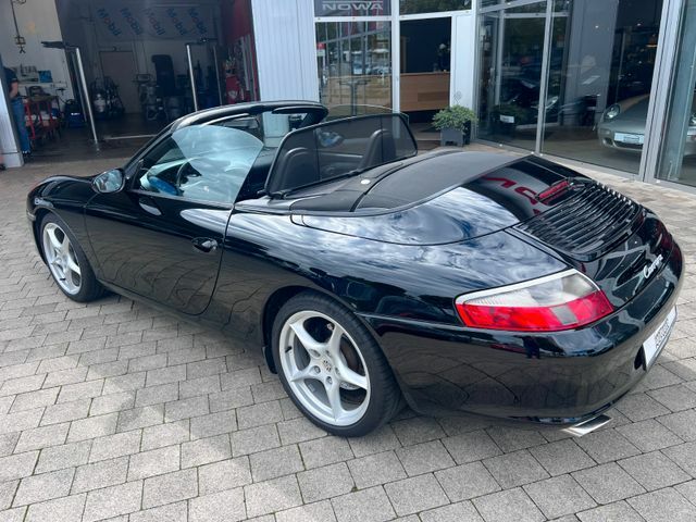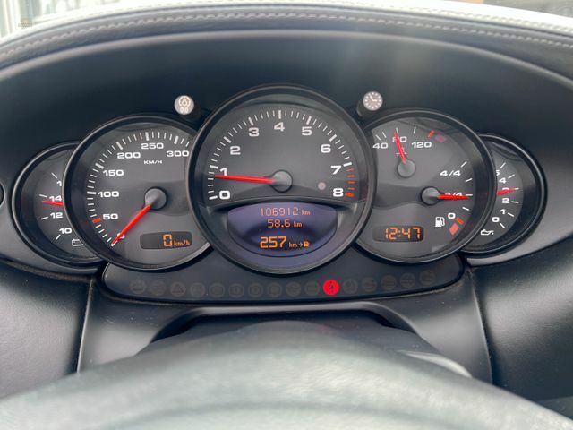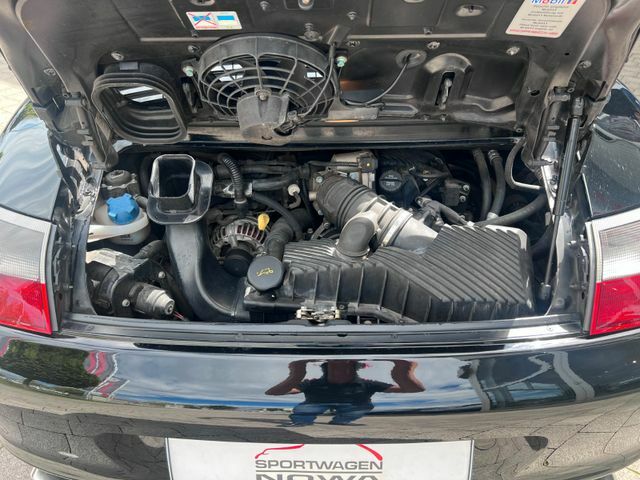 Erleben Sie die Faszination eines echten Sportwagen-Klassikers mit diesem gebrauchten Porsche 911 Cabrio aus dem Jahr 2003. Der leistungsstarke 3,6-Liter-Sechszylinder-Motor mit 320 PS bietet ein beeindruckendes Fahrerlebnis, während das manuelle Schaltgetriebe für sportliche Fahrfreude sorgt. Der Heckantrieb unterstreicht den authentischen Charakter dieses ikonischen Fahrzeugs. Die schwarze Außenlackierung harmoniert perfekt mit dem schwarzen Lederinterieur und verleiht dem Wagen eine zeitlose Eleganz.