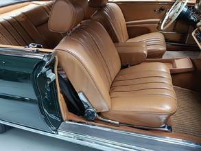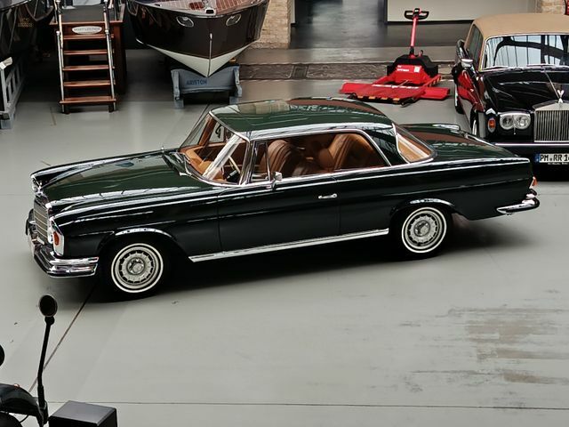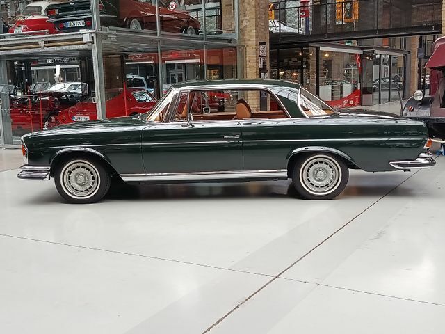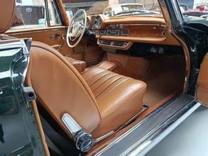 Besonders der traumhafte, originale Innenraum mit dem einzigartigen Leder „Bambus“, womit auch das Armaturenbrett und die Seitenverkleidungen handgefertigt bezogen sind, ergibt mit dem wundeschönen Wurzelholz eines der stilvollsten Interieurs in der langen Geschichte der Mercedes-Coupés.
