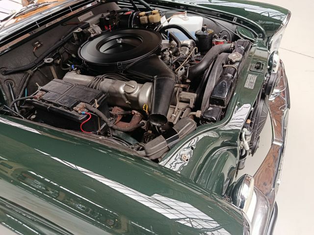 Ausstattung: Servolenkung, belüftete Scheibenbremsen vorn, AirCondition, elektr. Stahlschiebedach, Voll-Lederpolsterung m.Armlehnen, Wurzelholz, Elfenbein-Lenkrad, Alufelgen mit Weisswand-Radialreifen, org.Audioanlage Becker Europa, Verbundglas-Heizheckscheibe mit unsichtbaren Heizfäden, org. Nebelscheinwerfer.