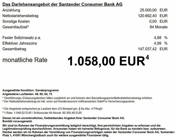 ∗nur 1.058€ bei nur 25.000€ Anzahlung, 1.239€ bei nur 15.000€ Anzahlung oder nur 1.509€ ohne Anzahlung
