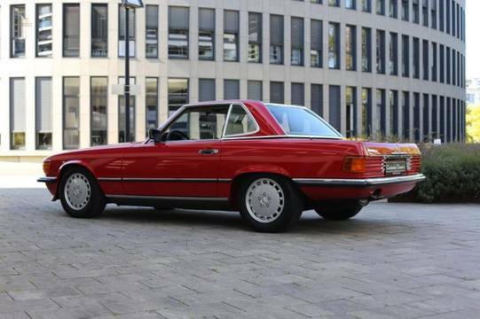 Erstzulassung war im April 1988 durch die Daimler-Benz AG in Mannheim, Deutschland. Seitdem wurde der Wagen stets sorgsam behandelt und liebevoll gepflegt. Lackiert in Signalrot (Farbcode 568) befindet sich der Lack noch immer in makellosem, unversehrtem Zustand mit tiefem, gleichmäßigem Glanz. Seit unserem ersten Kontakt im Jahr 2017 hat der Wagen den Besitzer gewechselt und befindet sich nun in einer Sammlung, in der rote Fahrzeuge eine besondere Leidenschaft darstellen.