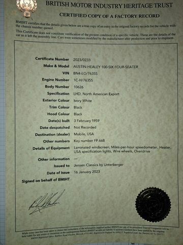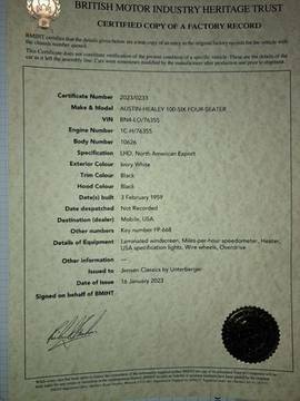 British Motor Hertitage Certificate vorliegend - MATCHING NUMBERS !