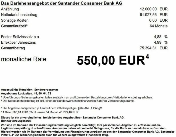 ∗nur 550€ bei nur 12.000€ Anzahlung, 640€ bei nur 7.000€ Anzahlung oder nur 766€ ohne Anzahlung
