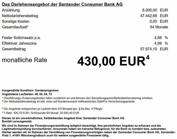 ∗nur 430€ bei nur 8.000€ Anzahlung, 484€ bei nur 5.000€ Anzahlung oder nur 575€ ohne Anzahlung