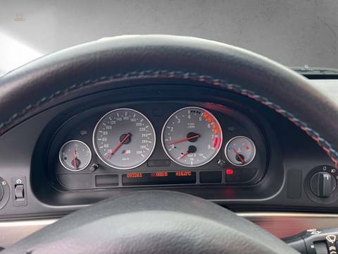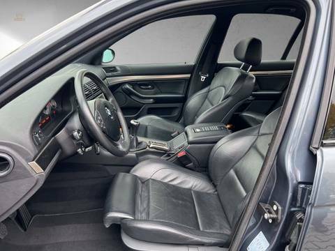 Dieser BMW M5 Limousine aus dem Jahr 1999 präsentiert sich in elegantem Schwarz-Metallic mit schwarzer Lederausstattung. Mit 400 PS und Heckantrieb bietet dieser Klassiker ein authentisches Fahrerlebnis, unterstützt durch das manuelle Getriebe. Der Wagen verfügt über eine lückenlose Servicehistorie und wurde kürzlich gewartet. Die Ausstattung umfasst eine Automatik-Klimaanlage, Xenon-Scheinwerfer mit Waschanlage, beheizbare elektrisch verstellbare Sitze und Parksensoren vorne sowie hinten. Der 4,9-Liter-Motor (4941 ccm) entspricht der Euro-2-Norm und wurde von nur drei Vorbesitzern gefahren. Die Sicherheitsausstattung beinhaltet Front- und Seitenairbags, ESP, ABS und eine Alarmanlage.