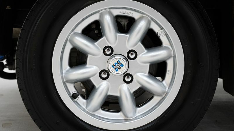 The body was repainted in a non-original color and shows scratches and imperfect panel alignment, but still looks neat.