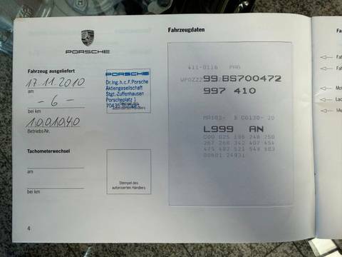 3. Bremsleuchte, Airbag Fahrer-/Beifahrerseite, Anzeigeinstrumente mit Hintergrund schwarz, Bi-Xenon-Scheinwerfer, Bordcomputer, Bremsanlage verstärkt, Dachhimmel Alcantara, Heckscheibe heizbar, Innenraumfilter: Aktivkohlefilter (Geruchsfilter), Isofix-Aufnahmen für Kindersitz an Beifahrersitz, Karosserie: 2-türig, Klimaautomatik, Koffer- und Motordeckelentriegelung elektrisch, Kopf-Airbag-System Porsche Side Impact Protection System (POSIP), Kopf-Schulter-Airbag vorn (Thoraxbag), Lenksäule (Lenkrad) verstellbar, Modellpflege, Motor 3,6 Ltr. - 254 kW KAT, Nebelschlussleuchte, Reifen-Reparaturkit, Schwellerabdeckung / -verkleidung, Seitenairbag vorn, Sitzbezug / Polsterung: Teilleder, Sound-Package Plus, Sperrdifferential, Verglasung getönt