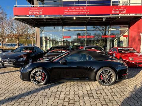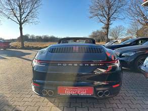 Airbag Fahrer-/Beifahrerseite, Antriebsart: Heckantrieb, Außenspiegel asphärisch, links, Außenspiegel elektr. verstell- und heizbar, beide, Blinkleuchten LED, Bremssättel Rot lackiert, Cabrio, Connect Plus (Bluetooth, Apple CarPlay, WLAN, Vehicle-Tracking-System), Dachhimmel Stoff, Diebstahl-Warnanlage mit Innenraumüberwachung, Drehzahlmesser, Einschaltautomatik für Fahrlicht, Einstiegsblenden mit Modellbezeichnung (Aluminium), Fahrassistenz-System: Berganfahr-Assistent (Hill-Holder), Fahrassistenz-System: Kollisionswarnsystem mit Bremseingriff und Fußgängererkennung, Fahrassistenz-System: Park-Assistent vorn und hinten inkl. Rückfahrkamera, Fußmatten, Getriebe 8-Gang - Doppelkupplungsgetriebe (PDK), Getränkehalter, Hauptscheinwerfer LED, Heckleuchten LED, Heckscheibe heizbar, Heckspoiler, Innenausstattung: Leder, Serienlederfarbe, Innenraumfilter: Aktivkohlefilter (Geruchsfilter), Interieur-Paket: Diamar Dark Silver, Isofix-Aufnahmen für Kindersitz an Beifahrersitz, Karosserie: 2-türig, Keyless Drive, Kleiderhaken Sitzrückenlehne Leder, Klimaautomatik 2-Zonen, Kopf-Airbag-System Porsche Side Impact Protection System (POSIP), Kopf-Schulter-Airbag vorn (Thoraxbag), Motor 3,0 Ltr. - 331 kW KAT, Otto-Partikelfilter (OPF), Parkbremse elektrisch, Porsche Active Suspension Management (PASM), Porsche Communications Management (PCM) inkl. Online - Navigationsmodul, Porsche Torque Vectoring Plus (PTV Plus), Porsche Traction Management (PTM), Reifendruck-Kontrollsystem, Schadstoffarm nach Abgasnorm Euro 6d-TEMP, Schriftzug Modellreihe, Schwellerabdeckung / -verkleidung lackiert, Sound-Package Plus, Sport Taste, Start/Stop-Anlage, Turbo, Uni-Lackierung, Vehicle-Tracking-System (PVTS), Verdeckbetätigung elektrisch, Verglasung getönt, Windschott elektrisch