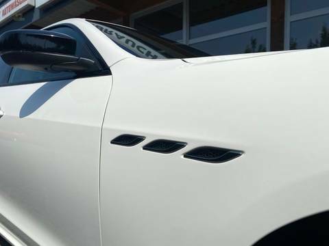 8 Lautsprecher, Airbag Beifahrerseite abschaltbar, Airbag Fahrer-/Beifahrerseite und Seitenairbag vorn, Auspuffanlage (Doppelauspuffblende) mit Endrohre verchromt, Außenspiegel elektr. verstell-, heiz- und anklappbar, Außentemperaturanzeige, Bordcomputer mit Farbdisplay, Bremsanlage: Brembo, Bremsassistent (HBA), Bremssättel Rot lackiert, Chrome-Line Exterieur, DAB-Tuner (Radioempfang digital), Dachhimmel Stoff, Differentialsperre (Hinterachse), Einparkhilfe vorn und hinten, Einstiegsleisten (Edelstahl), Elektr. Bremskraftverteilung (EBD), Elektron. Traktionskontrolle, Exterieurumfänge Glossy black, Fahrassistenz-System: Berganfahrhilfe, Fahrassistenz-System: Notbrems-Assistent (BAS), Fahrassistenz-System: Spurhalteassistent, Fahrmodusschalter, Fahrwerk elektronisch geregelt (Skyhook), Fensterheber elektrisch vorn + hinten, Fußmatten Velours, Gepäcknetz im Koffer-/Laderaum, Getriebe Automatik - mit manueller Schaltmöglichkeit (8-Stufen), Handschuhfach mit Kühlfunktion, Heckleuchten LED, Heckscheibe heizbar, Innenausstattung: Interieureinlagen Dark Mirror, Innenausstattung: Leder - erweiterter Umfang, Innenspiegel mit Abblendautomatik, Karosserie: 4-türig, Keyless-Entry, Keyless-Entry & Go, Klimaautomatik 2-Zonen, Knieairbag Fahrerseite, Kofferraumdeckel / Heckklappe elektrisch betätigt (öffnen + schliessen), Kopf-Airbag-System (Windowbag), Kopfstützen mit Geprägter Dreizack, Lenkrad (Sport/Leder - 3-Speichen) mit Multifunktion, Lenksäule (Lenkrad) elektr. verstellbar (vertikal / axial), Leseleuchten vorn und hinten, LM-Felgen, Matrix-LED-Scheinwerfer, Mittelarmlehne hinten mit Getränkehalter, Mittelarmlehne vorn mit klimatisiertem Staufach und 12V-Anschluß, Modellpflege, Motor 3,0 Ltr. - 257 kW V6 TwinTurbo KAT, Motor-Schleppmoment-Regulator (MSR), Multimedia-System Maserati Touch Control (inkl. 10,1 Zoll, DAB+, Navigation, Apple CarPlay, Android Auto), Navigationssystem, Parkbremse elektrisch (EPB), Pedalerie Edelstahl, Reifen-Reparaturset, Reifendruck-Kontrollsystem, Rücksitzlehne geteilt/klappbar (60:40), Schadstoffarm nach Abgasnorm Euro 6, Schalt-/Wählhebelgriff Leder, Seitenschürzen, Smartphone Schnittstelle (Apple CarPlay & Android Auto), Soft-Close-Automatik für Türen, Sonnenblenden mit Spiegel (beleuchtet), Sportsitze vorn elektr. verstellbar (links mit Memory), Sprachbedienung Smart Personal Assistent (SIRI), Start-Stop-Knopf, Start/Stop-Anlage, Steckdose (12V-Anschluß) im Koffer-/Laderaum, Tagfahrlicht LED, Telematik-System Maserati Call, Uni-Lackierung, USB-Anschluss + AUX-IN-Anschluss, Wärmeschutzverglasung (Dämmglas)