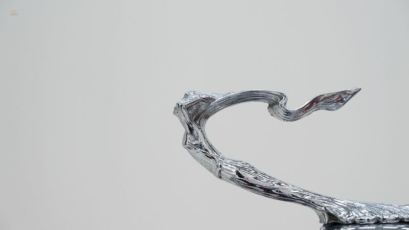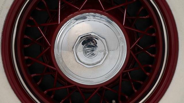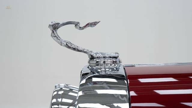 • Flowing fenders and a long hood, typical of the Art Deco era. • Chrome accents, including the radiator grille, bumpers, and trim, enhancing its luxurious appearance. • Wire wheels with whitewall tires, offering a refined and classic look. • Dual spare wheels elegantly integrated into the fenders. • Two-passenger cabin, with an optional rear dicky seat, suitable for two additional passengers.