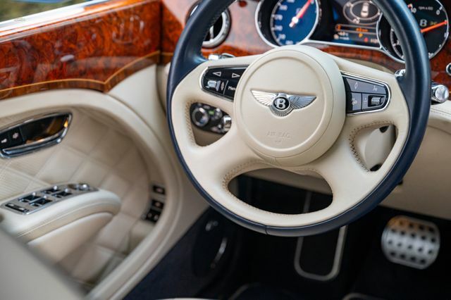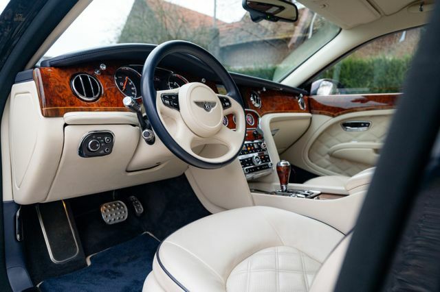 Bentley Mulsanne Mulliner mit fast allen verfügbaren Werksoptionen in schöner Farbkombination.Black Sapphire (Dunkelblau) mit Leder Linen & Imperial Blue (Beige & Blau).