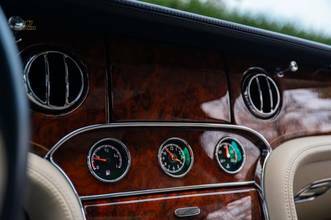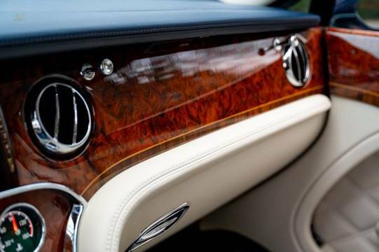 Bentley-Flügelemblem und Chrom-Einlegestreifen an den Seitenschwellern und Emblem an der Armaturentafel