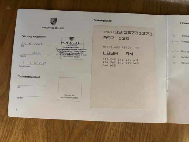 3. Bremsleuchte, Airbag Fahrer-/Beifahrerseite, Antriebsart: Heckantrieb, Anzeigeinstrumente mit Hintergrund silber, Außenspiegel elektr. verstell- und heizbar, beide, Bi-Xenon-Scheinwerfer, Bordcomputer, Bremsanlage verstärkt, Dachhimmel Alcantara, Heckscheibe heizbar, Innenraumfilter: Aktivkohlefilter (Geruchsfilter), Isofix-Aufnahmen für Kindersitz an Beifahrersitz, Karosserie: 2-türig, Klimaautomatik, Koffer- und Motordeckelentriegelung elektrisch, Kopf-Airbag-System Porsche Side Impact Protection System (POSIP), Lenkrad (Sport/Leder, 3-Speichen), Lenksäule (Lenkrad) verstellbar, LM-Felgen, Motor 3,8 Ltr. - 261 kW KAT, Nebelschlussleuchte, Porsche Active Suspension Management (PASM), Reifen-Reparaturkit, Seitenairbag vorn, Sitzbezug / Polsterung: Teilleder, Sound-Package Plus, Verglasung getönt