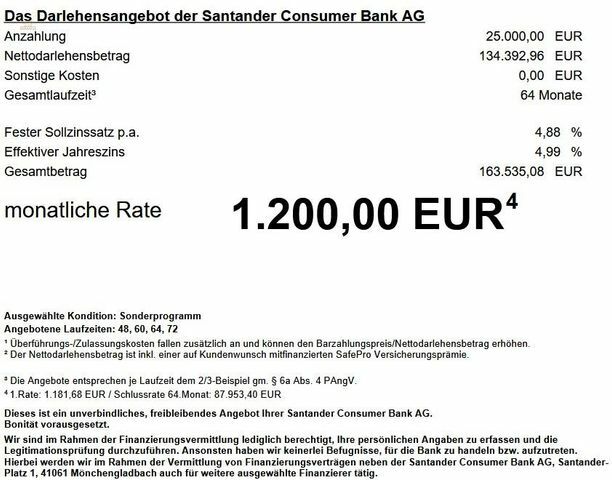 ∗nur 1200€ bei nur 25.000€ Anzahlung, 1396€ bei nur 10.000€ Anzahlung oder nur 1667€ ohne Anzahlung