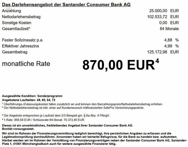 ∗nur 870€ bei nur 25.000€ Anzahlung, 1047€ bei nur 15.000€ Anzahlung oder nur 1318€ ohne Anzahlung