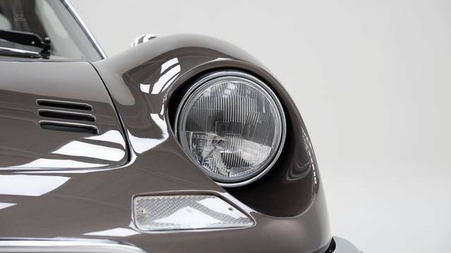 The timeless bodywork by Pininfarina is widely regarded as one of the most beautiful sports car designs of all time. Its flowing lines, compact proportions and perfect visual balance give the Dino a timeless elegance. This particular example is further enhanced by its exceptionally rare Marrone Dino Metallizzato colour, produced in very limited numbers.