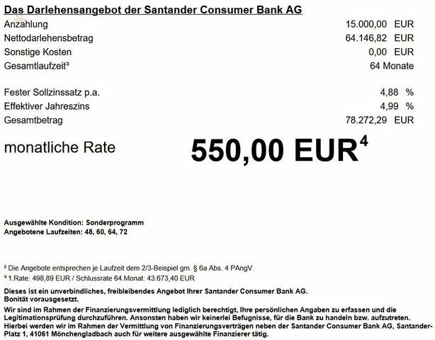 FINANZIERUNGSANGEBOT ∗nur 550€ monatlich mit nur 15.000€ Anzahlung