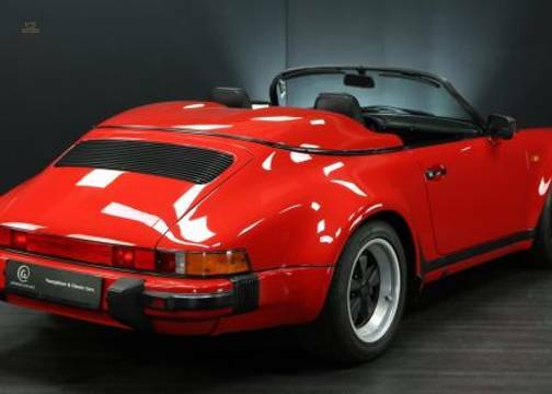 Dieser Porsche 911 Carrera 3,2 Speedster im Werks Turbo-Look mit europäischer Erstauslieferung befindet sich in einem ausgesprochen schönen Zustand. Die niedrige Laufleistung ist umfangreich dokumentiert mit dem originalen Scheckheft und weiteren Dokumenten.
