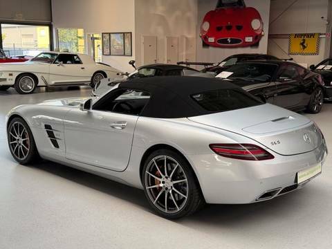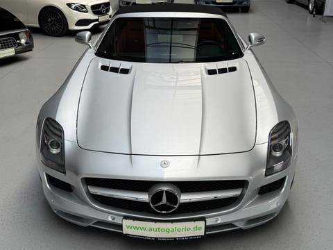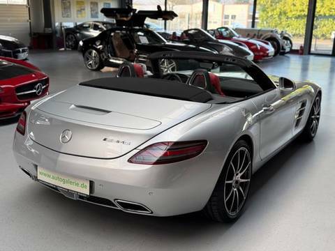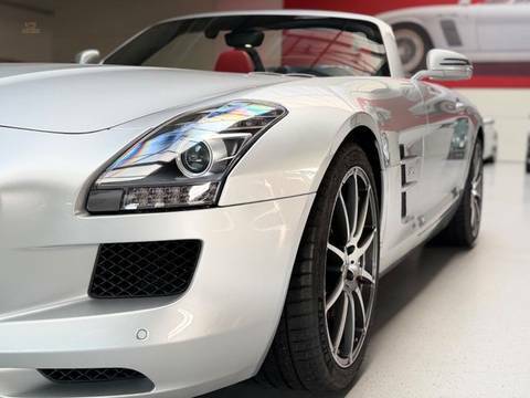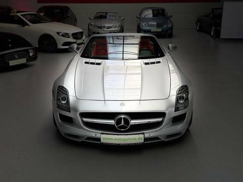 Der Roadster befindet sich in nahezu neuwertigem Zustand. Das Fahrzeug ist unfallfrei sowie nachlackierungsfrei und präsentiert sich entsprechend außergewöhnlich original und hervorragend gepflegt. Zur Ausstattung gehört das AMG Carbon Paket, das dem Fahrzeug eine nochmals sportlichere und exklusivere Optik verleiht. Zusätzlich verfügt der SLS über die AMG Keramik Hochleistungsbremsanlage, welche für maximale Verzögerung, geringeres Gewicht und höchste Performance steht.