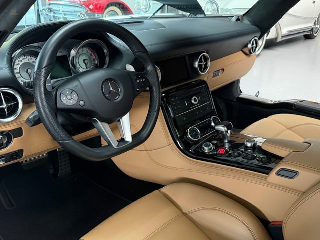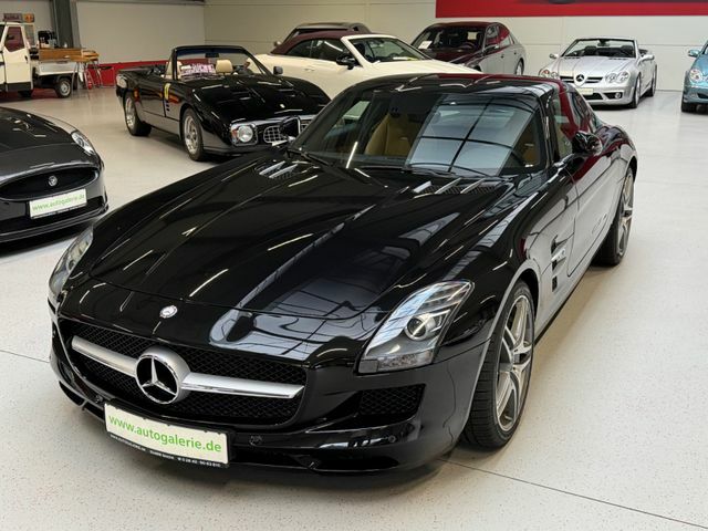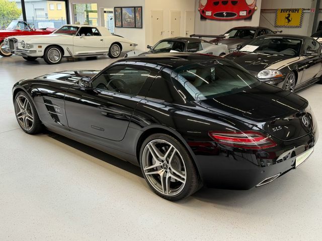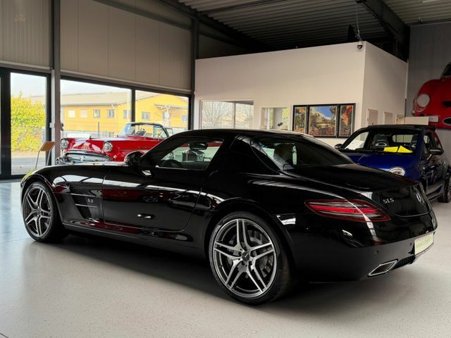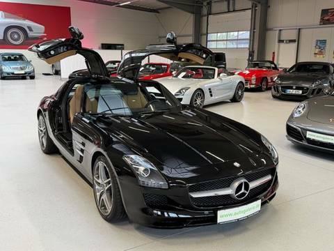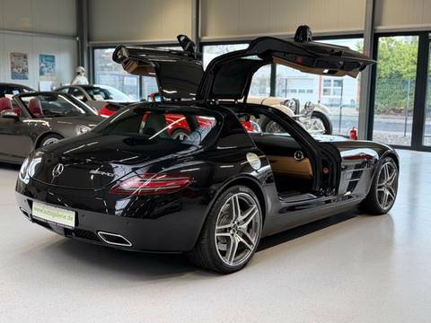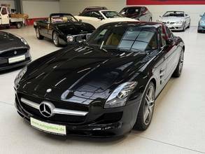 Das Fahrzeug kann wahlweise auf schwarzen AMG-Leichtmetallrädern oder auf den aktuell montierten, abgebildeten Felgen übergeben werden. HU/AU werden vor Übergabe erneuert. Ein ehrlicher, unverfälschter SLS Coupé in einer Konfiguration, die langfristig relevant bleibt – original, wenig gelaufen, deutsches Fahrzeug. Genau so, wie man ihn sucht. Wir haben viele weitere SLS im Bestand.Wir freuen uns, Sie schon bald bei uns begrüßen zu dürfen, um Ihnen dieses außergewöhnliche Fahrzeug zu präsentieren.
