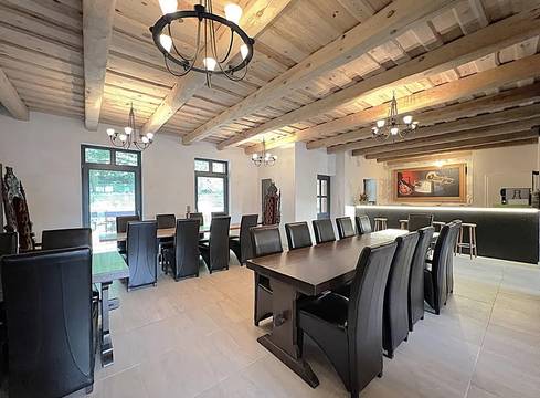 Das Erdgeschoss ist als Gastronomiefläche bereits vorbereitet, bietet jedoch zahlreiche Optionen für eine Nutzungserweiterung oder Umgestaltung. Die großzügige Fläche eignet sich nicht nur für den Betrieb eines Restaurants, sondern auch für Eventräume, Seminarräume oder einen Gesundheitsbereich. Mehrere Tresenbereiche und eine Vielzahl an Outdooreinrichtungen stellen sicher, dass die Immobilie von Anfang an vielseitig genutzt werden kann.