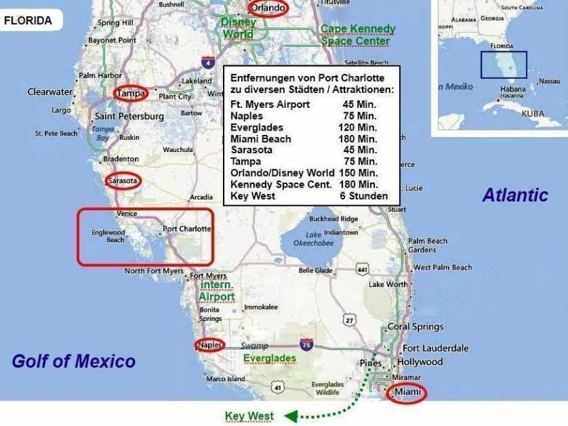 Port Charlotte liegt ca. 50 Meilen südlich von Sarasota und ca. 25 Meilen nördlich von Fort Myers.