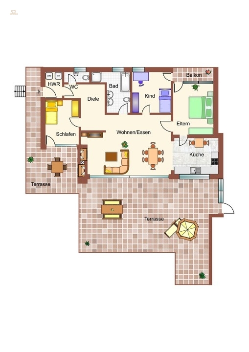 Es erwartet Sie nicht nur ein Wohnbereich mit durchdachter Aufteilung, sondern auch eine ca. 100 qm großen Terrasse, die teilweise überdacht ist und einen Gartenanteil von 200 qm. Für ein familiäres und geselliges Zusammensein eignet sich der große offene Wohn-/Ess- und Küchenbereich. Eine luxuriöse Einbauküche ist vorhanden.