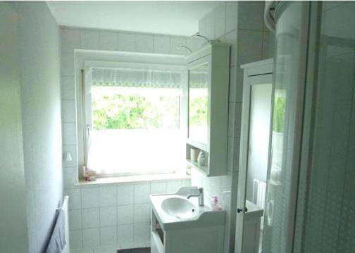 Die Wohnung ist im Schlaf- und Wohnzimmer mit Laminat ausgestatt, die anderen Zimmer sind gefliest.