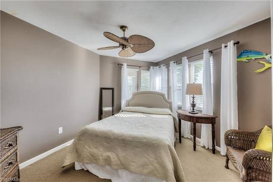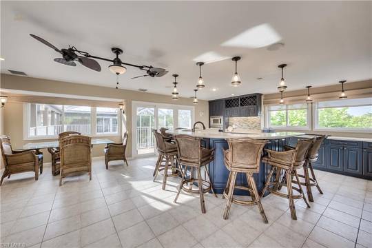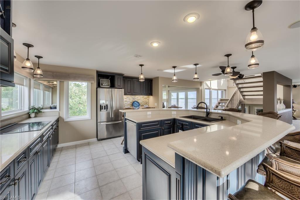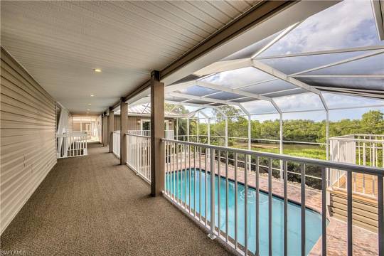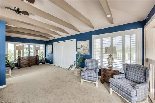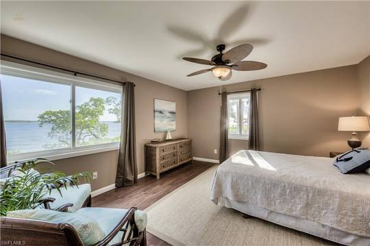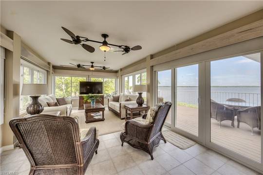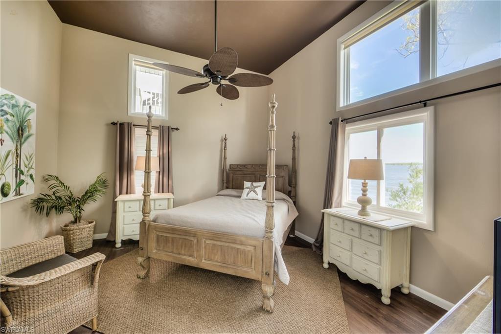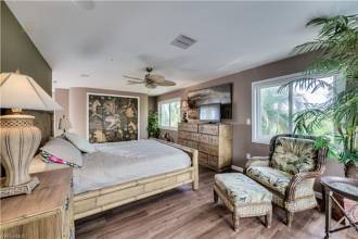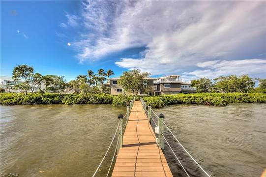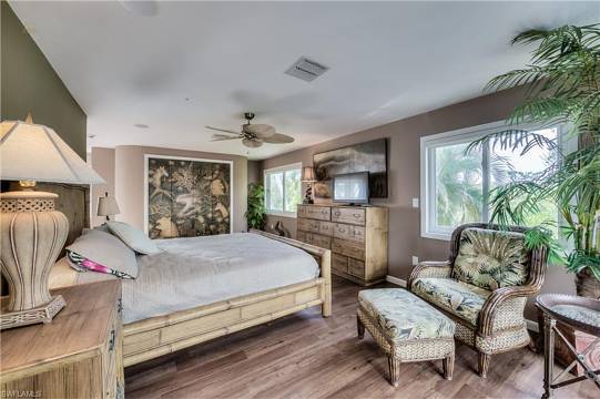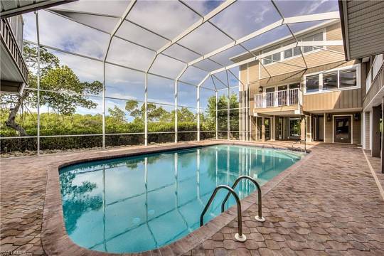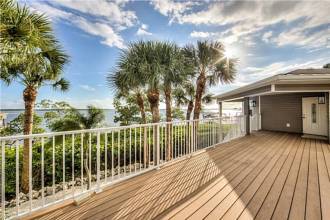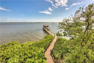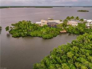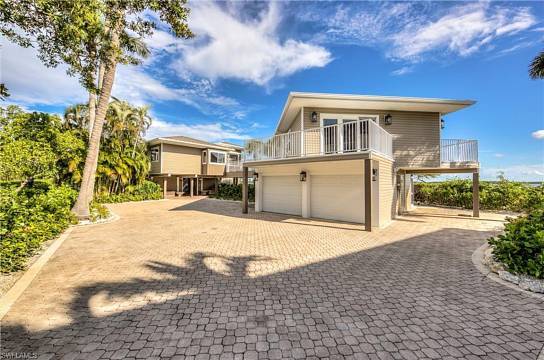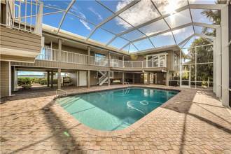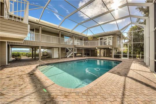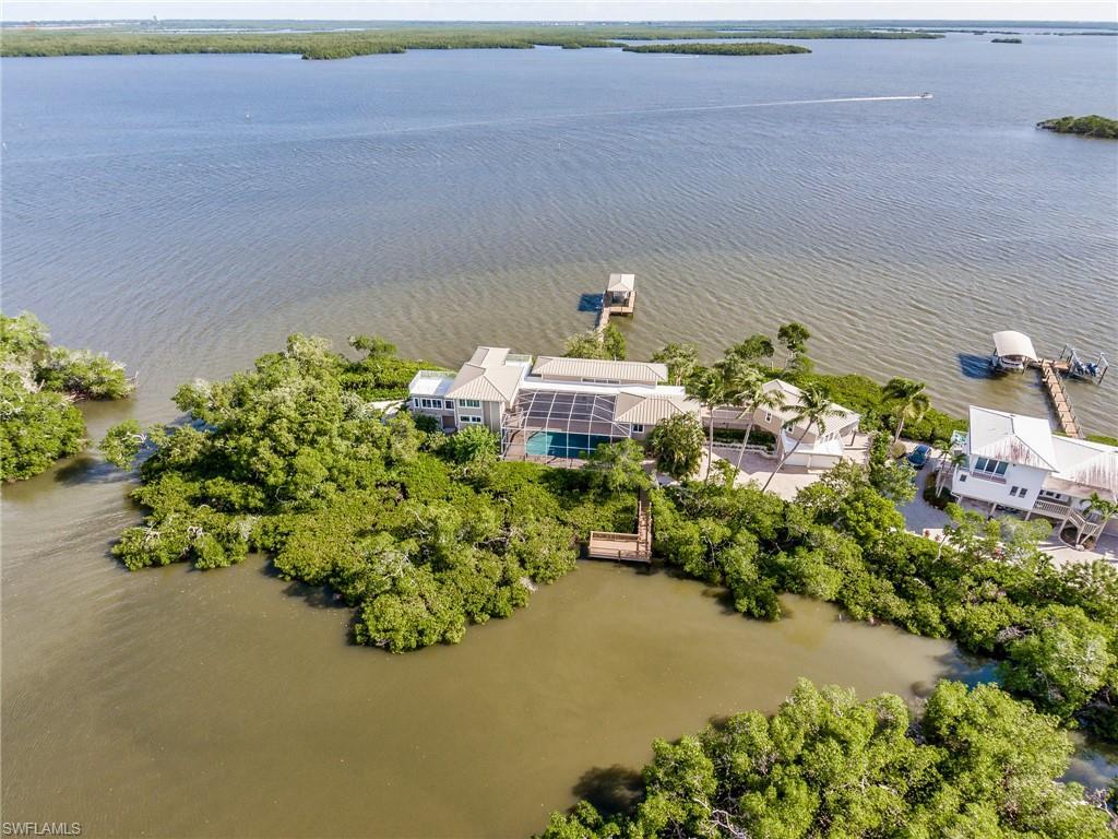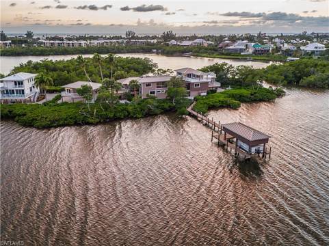 Hidden Bayfront Retreat located on it's own island peninsula in gated Flamingo Harbour on the mid southern end of Fort Myers Beach. Ideal Corporate Retreat. Over a third of an acre surrounded by nearly 500' of waterfront on 3 sides with over 200' of frontage on the bay! This lush estate boasts several observation decks, an extended pier to your own bayfront covered dock & lift and spacious courtyard heated pool. 4 separate private guest suites and 1 guest apartment. Wired for surround sound in the main home & pool area. Double doors lead you into the 2 story caged pool area with pavered deck. Lush landscaping surrounds the home on all sides, with walking trails to secret gardens. You will wow your guests with the spacious kitchen and wrap around island bar with room for 9 and views from every window. This is the perfect home for entertaining all weekend long! Where the dolphins play and the waters gently lap against the mangroves. Make your appointment today to see this one of a kind slice of paradise.