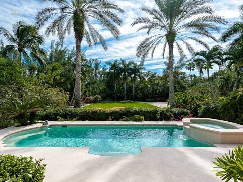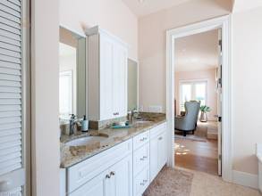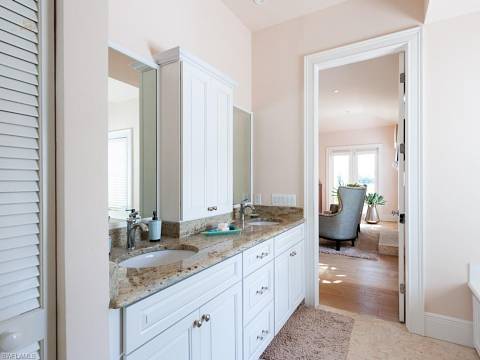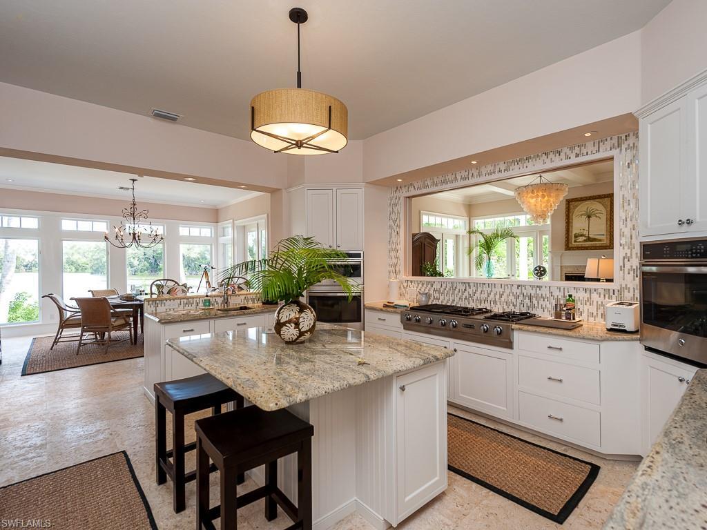 Stunning Caribbean style home utilizes southern hospitality to welcome you to this one of a kind custom home on 2 lots overlooking Emerald Lake. On a private drive this tropical resort oasis is truly a hidden gem. Upon entering the home you are greeted by sweeping lake views enhanced by the floor to ceiling windows and volume ceilings. This home contains 4 bedrooms and 5 bathrooms including a bonus room and guest quarters with morning kitchen and private entrance. State of the art open concept chef’s kitchen with white custom cabinetry, granite counters and a butler’s pantry with wine cellar provides unparalleled space for entertaining. Dining area with dramatic lake view flows to the great room with continued views and multiple access points to the large porch overlooking the pool and lake. The magnificent master suite offers dramatic vistas, gas fireplace, his and hers bathrooms and closets. Shell stone and wood floors are featured throughout the home and accent the Caribbean charm.