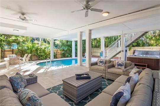 PHENOMENAL PRICE! Introducing Casa Blanca; a 4 Bedroom, 4 Bath luxury beach home with well over 3,000 living square feet only 3 homes and approximately 120 feet to the white sand beach and calm waters of the Gulf of Mexico. Located on a lushly landscaped private sandy lane, this lovely abode has all the comforts of home boasting beautiful decor, spacious open floor plan, upscale kitchen, new wet bar in the living area, 3 Master Suites, large laundry room with plenty of storage, high ceilings and doors, nice architectural detailing, a hip remodeled pool and pool lounge complete with dining area, hot tub and outdoor shower, 2 sizeable screened lanais, a rooftop sundeck and two car garage. So close to the beach you can hear the waves! So close to walkable, lively Captiva Village offering restaurants, shops, marinas, library, historic Chapel By The Sea and more. Impressive rental history adds to the value for those looking to use and invest. See attached list of the recent improvements.