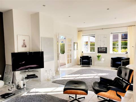 The living room is on the south-west side, also with a direct connection to the south-west terrace surrounded by green.