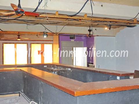 Im Moment befinden sich ein Lokal mit großem Kellerraum (Bar), WC, 2 Säle, Küche mit Speiseaufzug, Treppenaufgang, Patio und Dachgeschoss-Wohnung mit wunderschönem Blick über die Dächer des Dorfes bis in die Berge, in dem Gebäude.