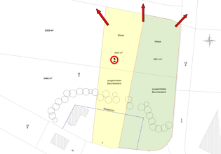 Es liegen Baugenehmigungen für ein Einfamilienhaus oder für ein Doppelhaus vor!