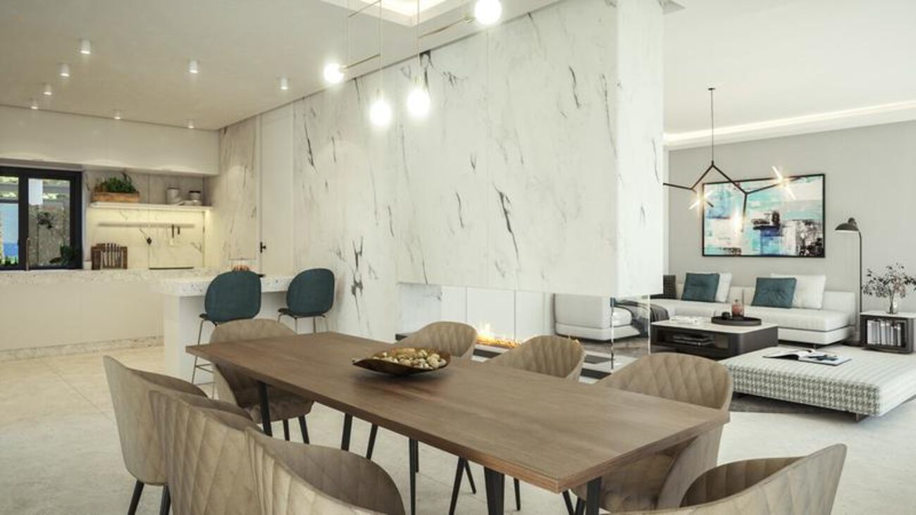 Complex of 40 single villas & semi-detached villas , located in Elviria, Marbella, overlooking Santa María & Country Club and panoramic sea views to the Mediterranean Sea.All the villas are SW oriented, to enjoy the sun all day. 14 of them will be in a gated private community, first line golf with beautiful views to the valleys of pine trees and cork oaks.The villas will have 3 levels: large basement with the possibility to do additional 1 to 3 bedrooms more depending the villa. Main floor with a huge open plan kitchen, large living & dining room, guest toilet, some ones with a bedroom with en suite bathroom (4 bedrooms villas), terrace/s, garden and swimming pool . On top floor we have always 3 bedrooms, each one with en suite bathroom and terrace/s.We create a mix of 7 types villas and semi-detached villas Andalusian style with modern lines to create this amazing Marbella life style. Each luxury villa will be built with high qualities and will have private pool, garage, under floor heating, fire place, kitchen fully equipped, air conditioning, alarm system, tropical garden.