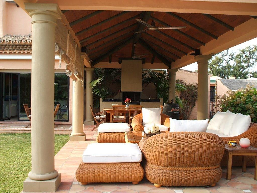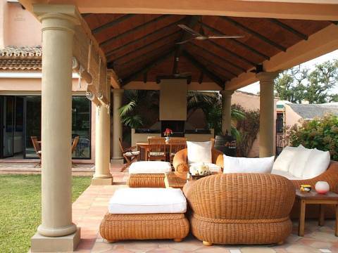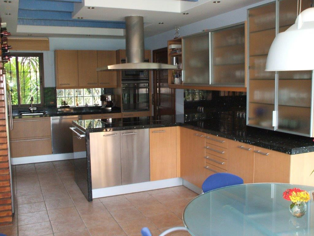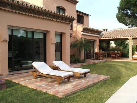 Situated very close to the beach, just a few metres away and close to all kind of amenities like restaurants, shops, supermarkets, bars,etc. This lovely house is totally renovated to high standards with a charming mix of contemporary-rustic style. The accommodation comprises, four double bedrooms, three bathrooms, a guest toilet, two levels living room with fireplace and TV area. Dining room, fully fitted kitchen with breakfast area, nice covered porch overlooking the mature garden and a private swimming pool. Double garage, solar panels, alarm system, central heating .