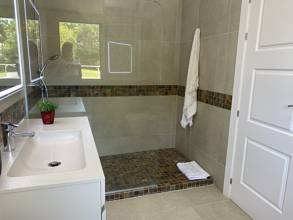 windows, solar panels, A/C, alarm, open fireplace, saltwater swimming