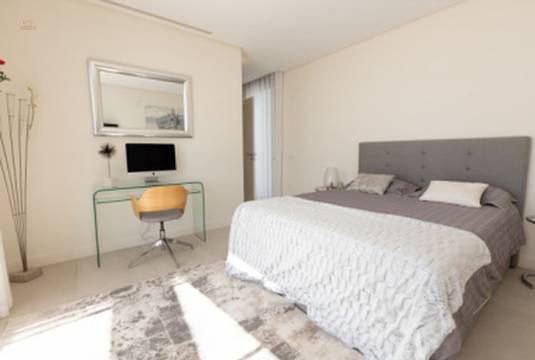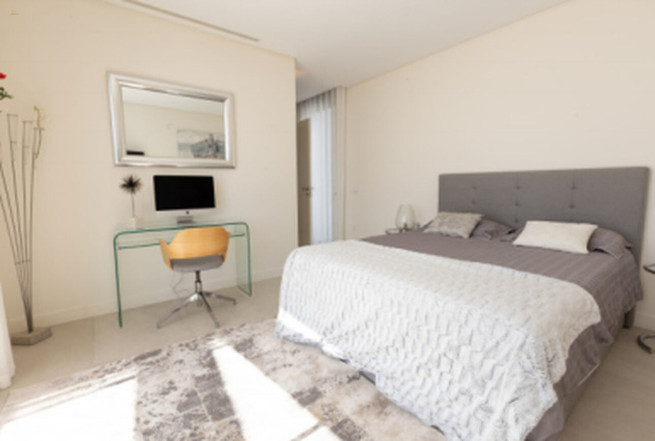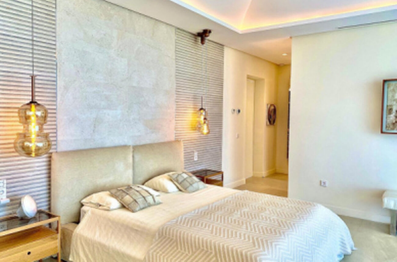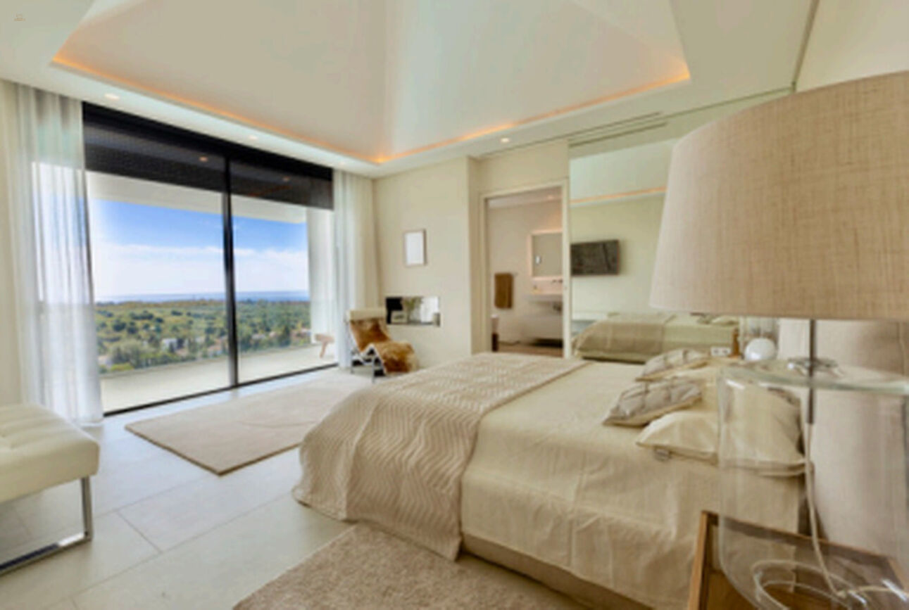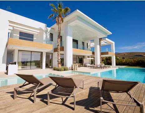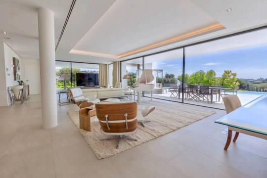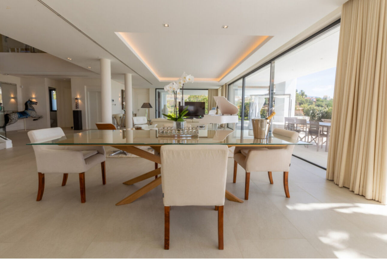 For sale this fantastic contemporary Villa, within the exclusiveLos Flamingos Golf urbanization, with spectacular views of the sea and thegolf course, designed by the architect Carlos Lamas, with an architecturemodern and original design. Located in a very private street andpeaceful.With a striking entrance door, from the moment you enter the hall you canenjoy the panoramic views of the sea. The villa has been built inthree plants.On the ground floor there is a large living room with fireplace, dining room andmodern kitchen, with floor to ceiling windows and exit to spaciouscovered and uncovered terraces, with a beautiful designer poolinfinity with hammock and relaxation areas, a bedroom with ensuite bathroomand guest toilet. There is an elevator to access all three floors.On the upper floor there are 3 bedrooms with 3 bathrooms en suite. The bedroommain has a large dressing room and a terrace with panoramic views of thesea ??and golf. In the basement there are two bedrooms with windows and lightnatural, two en suite bathrooms, wine cellar and a large multipurpose room.Garage for two cars. The house is sold furnished.Do not miss the opportunity to see this excellent property built withexcellent qualities and with panoramic views of the sea and golf.Underfloor heating (the whole house), Double glazing, Video intercom, Surveillance cameras, Games room, Wine cellar, Laundry room, Fireplace, Basement.