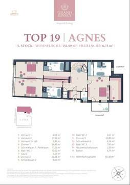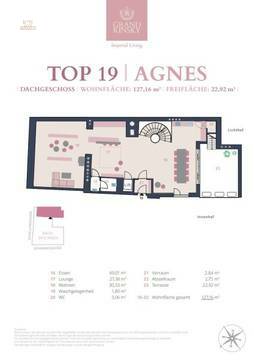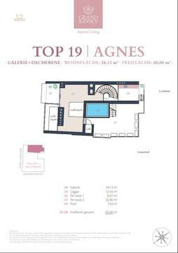 Die Dachebene besteht aus einer einzigartigen Galerie mit weitläufiger Terrasse mit ca. 63 m². Ein privater ca. 7,5 m² großer Nirosta Wateredgepool erwartet Sie auf dieser Ebene, von welcher Sie über die Dächer im Herzen der Wiener Innenstadt blicken. Die Granitblumentröge mit Kirschlorbeer werden automatisch bewässert und ein Sonnensegel spendet generösen Schatten. Auf den Terrassen sind alle Anschlüsse für eine Sommerküche vorhanden.