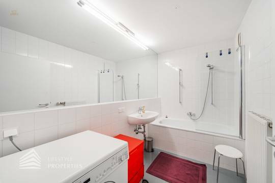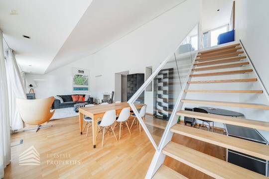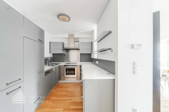 Bei Betreten der Wohnung gelangen Sie in den ca. 3 m² großen Vorraum. Links von Ihnen befindet sich das ca. 5 m² große, mit Badewanne, Waschtisch und Waschmaschinenanschluss ausgestattete, Badezimmer. Rechts von Ihnen befindet sich das WC. Der Vorraum führt Sie gerade hindurch in die moderne Küche, welche geschickt vom Wohnraum abgetrennt ist, aber dennoch dank einem gut geplanten Wanddurchbruch wie eine offen gestaltete Wohnküche wirkt. Vis-à-vis der Küche ist eine große Nische, welche Platz für einen riesigen Einbauschrank und genug Stauraum bietet. Den lichtdurchfluteten Wohnraum erreichen Sie, wenn Sie vom Vorraum gerade an der Küche vorbeigehen. Auf einer Fläche von ca. 44 m² haben Sie genügend Platz für einen großen Esstisch und eine gemütliche Sofalandschaft. Der Raum wird von einer Fensterfront ganztägig mit viel Licht durchflutet. Hinter der Glasfront verbirgt sich eine der Terrassen. Sie können diese über den Wohnraum betreten. Auf der ca. 12 m² großen Terrasse, welche sich über die gesamte Wohnlänge erstreckt, haben Sie ausreichend Platz für einen gemütlichen Frühstückstisch und weitere Möbel um die frische Luft genießen zu können. Zurück im Wohnraum, über die Treppe gelangen Sie in das nächste Geschoss. Die Treppe führt Sie direkt in das ca. 17 m² große Schlafzimmer. Das zugehörige Badezimmer, welches mit einer Dusche, einem Waschbecken und einer Toilette ausgestattet ist, kann direkt vom Schlafzimmer aus betreten werden. Im Schlafzimmer können Sie einen kleinen Arbeitsbereich mit einem Schreibtisch und einen Schlafbereich mit einem großes Bett schaffen. Die Fensterfront, welches den kompletten Raum mit viel natürlichem Licht durchflutet sorgt für eine angenehme Wohlfühlatmosphäre. Von dem Schlafzimmer können Sie die ruhige Richtung Innenhof gelegene ca. 14 m² große Terrasse sowie das absolute Highlight der Wohnung betreten. Eine Wendeltreppe führt Sie von der Terrasse auf die ca. 12 m² große Dachterrasse, welche Ihnen einen 360° Stadtblick über die Dächer Wiens bietet. Hier können Sie Ihre Wohlfühloase mitten in Wien errichten.