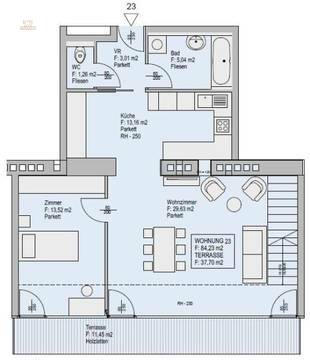 Die Wohnung befindet sich im 1. und 2. Dachgeschoss eines um das Jahr 2002 durchgeführten Dachausbaus. Sie kann entspannt über einen Personenaufzug erreicht werden. Die Wohnfläche von ca. 85 m² teilt sich auf in ein Schlafzimmer, ein Wohnzimmer, eine Küche, einen Vorraum, ein Badezimmer mit WC und ein weiteres Badezimmer, sowie ein Gäste-WC. Zusätzlich dazu bietet die Wohnung zwei große Terrassen und als absolutes Highlight eine unglaubliche Dachterrasse. Die Haupträume sind mit hochwertigem Parkett ausgekleidet, in den Nassräumen wurden Fliesen verlegt. Beheizt wird die Wohnung mittels Gasetagenheizung. Gegen einen Aufpreis können Sie das Mobiliar mit erwerben. Der Rücklagenstand beläuft sich per 15.07.2021 auf rund € 57.000,--.