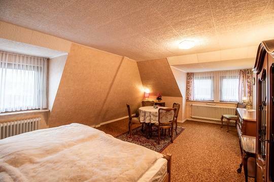 Das Obergeschoss präsentiert sich Ihnen mit zwei Zimmern, einem Abstellraum und einem kleinen Badezimmer mit WC und Waschbecken. Die Größe des Badezimmers sollte den Einbau einer Dusche ermöglichen.