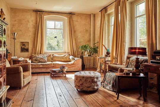 Unweit von Berlin in der Nähe von Löwenberg steht dieses großzügige Landhaus von 1930, mit einem eigenen Seezugang und einer ganz besonderen Aura. Es ist sehr romantisch, ein absolutes Paradies! Traumhaft schön gelegen inmitten von Wiesen und Wäldern in einem Naturschutzgebiet. Kaum zu glauben, dass so ein Kleinod gerade einmal eine gute halbe Stunde (egal ob mit dem Auto oder der Bahn), vor den Toren der Berlins auf Euch wartet.