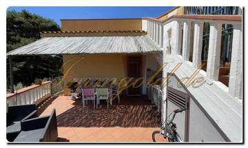 Die gesamte Dachfläche von 145 m² ist eine Terrasse, die über eine Innentreppe erreicht werden kann. Von hier aus hat man einen fantastischen Blick auf das Meer und kann das beeindruckende Farbenspiel bei Sonnenaufgang genießen. In Sichtweite befindet sich auch der Felsbogen ‚Arco Azzurro‘, der sich über einer kleinen Bucht erhebt.
