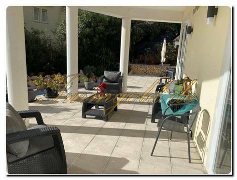 ist prima gestaltet für das Leben im Freien und wird durch ein schmiedeeisernes Tor zur öffentlichen Straße abgegrenzt. Unterstützt durch den Pool, den mediterranen Pflanzen und den Terrassen. Relaxen und genießen Sie das spanisch Flair. Nicht zu vergessen die Sonnen/Solar-Paneele (14 an der Zahl) die für ökologisch/ökonomisch gewonnene Zusatzenergie sorgen.