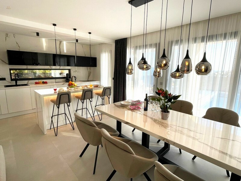 Die Villa wurde im Jahr 2023 errichtet und sie wird vollständig möbliert zum Verkauf angeboten. Fußbodenheizung ist in der Villa vorhanden. Jeder Bereich dieses Anwesens wurde sorgfältig durchdacht. Das ungefähr 540 m² große Grundstück bietet gepflegte Grünflächen, einen gepflasterten Innenhof sowie einen Außenparkplatz mit Platz für drei Autos.