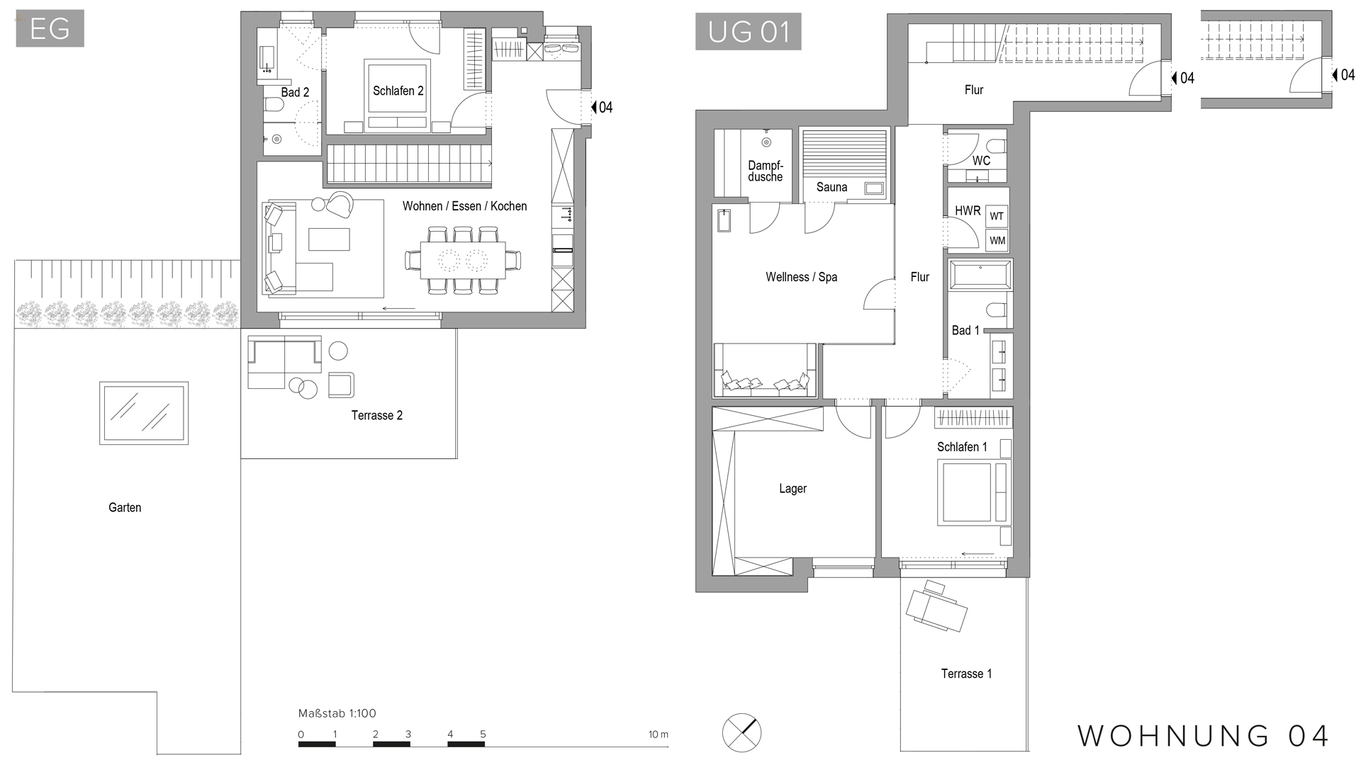 Alle Wohneinheiten verfügt über einen privaten Sauna- und Wellnessbereich mit Ruhebereich und Terrassenzugang im begrünten Lichthof.
