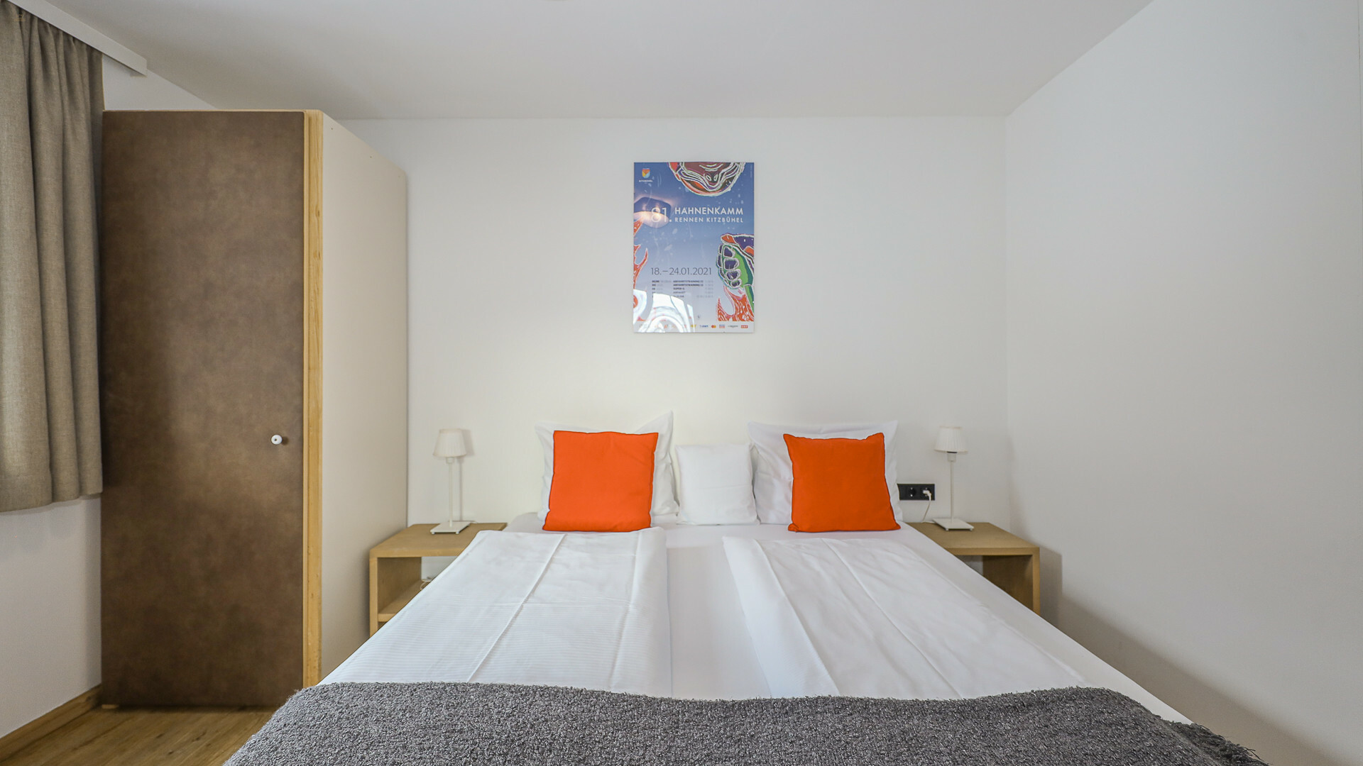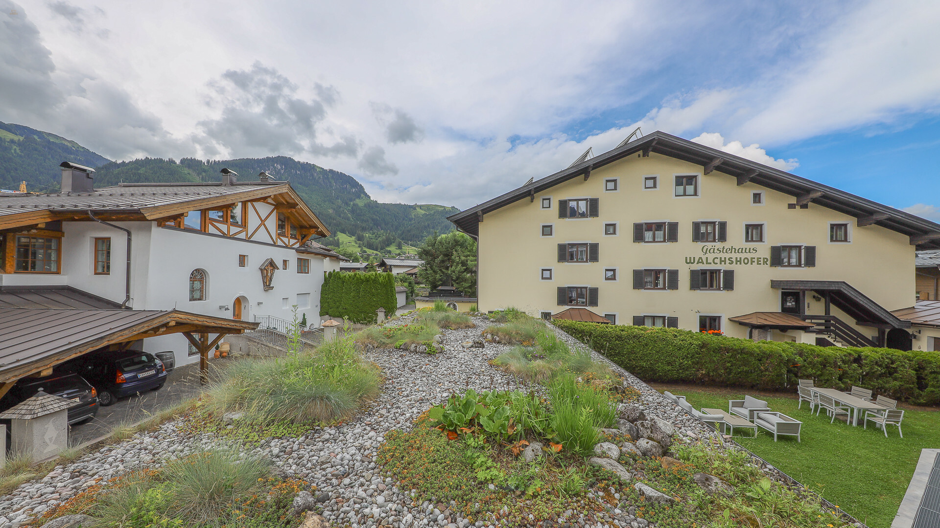 Die Suiten am Schloss liegen in sonniger Lage von Kitzbühel. Die Fußgängerzone, als auch die Skibushaltestelle ist in wenigen Gehminuten zu erreichen.